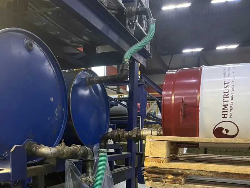 В рамках промышленного тестирования, специалисты АО «Химтраст» на производственной площадке провели оценку эффективности клеевого состава «Химтраст ПУ-Клей для сэндвич-панелей 2К 100:150_125-27».