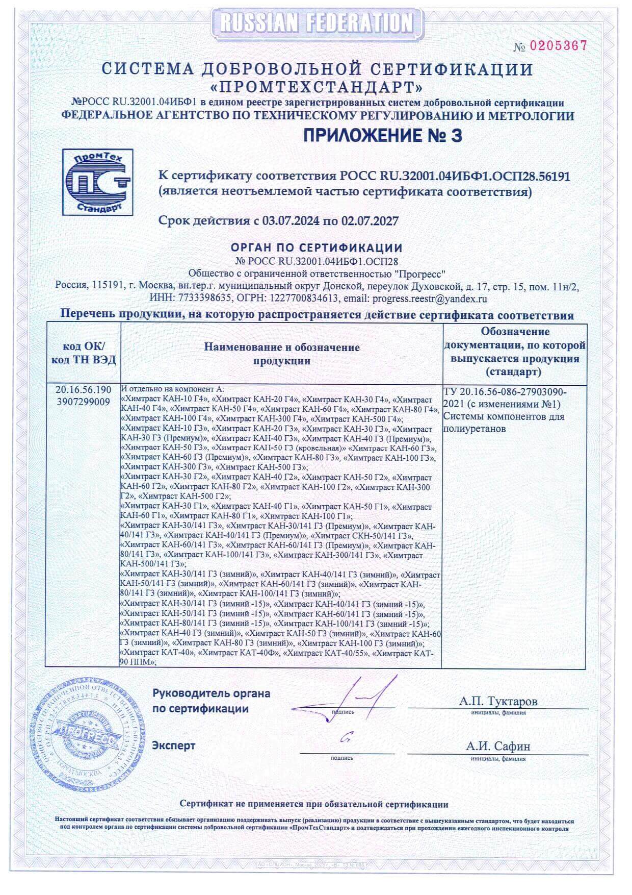 Сертификаты для заливочных ППУ